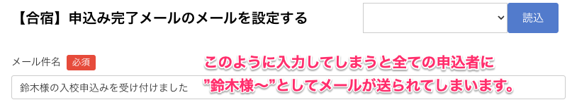 続けて、「様の入校申込みを受け付けました」と入力することで、お申込者ごとに名前を合わせた件名のメールが作成されるようになります。