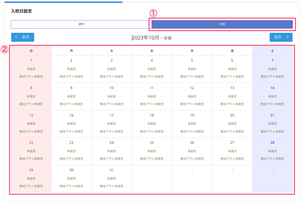 合宿設定合宿の申し込みを受付ける日を設定します。