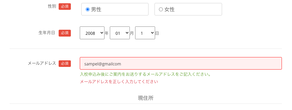 申し込み時に不正なメールアドレスの形式はエラーを出すようにしました