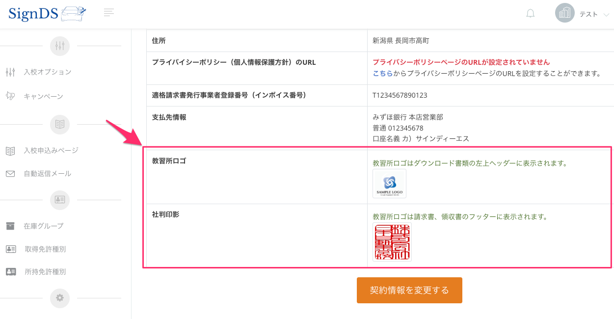 「申込書」、「請求書」、「領収書」といった書類にロゴと社判を追加できるようになりました。