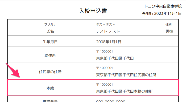 申し込み時に「本籍」を入力できるようになり、「住民票の住所」とともに、表示/非表示を変更できるようになりました。
