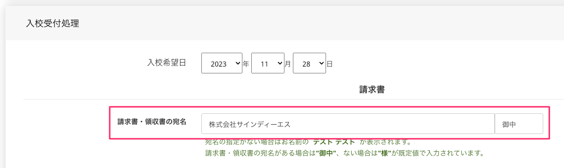 会社の従業員様が申し込みをされる場合など、請求書の宛名を簡単に会社名に変更できるようになりました。