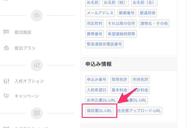 また、お客様にダウンロードしていただくために、「自動返信メール」の「入金確認メール」内に置き換え文字として『領収書DL-URL』を追加できるようになりました。