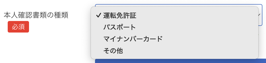 【変更後の申込画面の本人確認書類の種類】