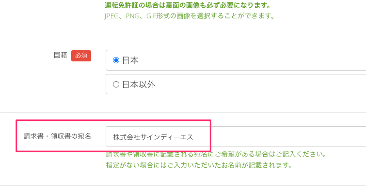 お申し込みは個人ですが、請求は会社宛にしてほしいといった場合に、請求書の宛名を法人名に変更する方法です。