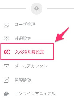 1.管理画面左のメニューから「入校種別毎設定」を開きます。