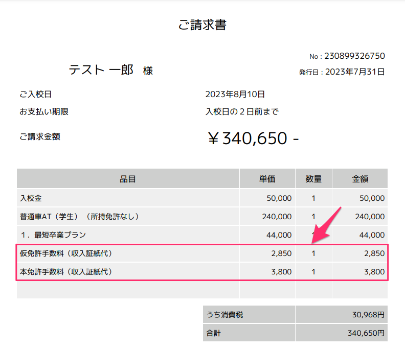 証紙代を申し込み後に徴収するような場合には、請求書に含めないことができます。