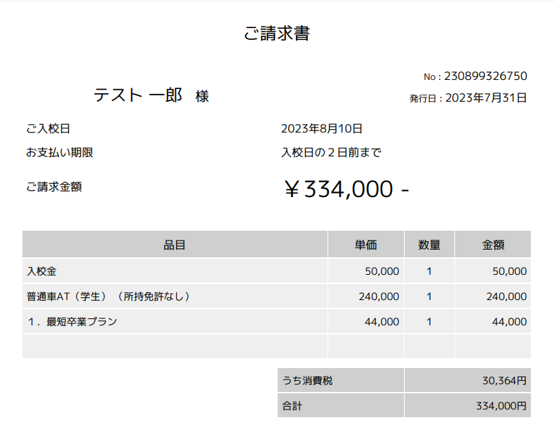 上記設定後に申し込みがされた場合は、請求書に0円とした「証紙代」の明細は表示されなくなります。