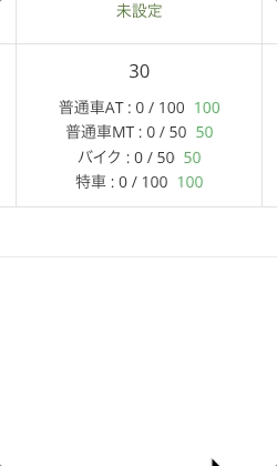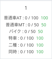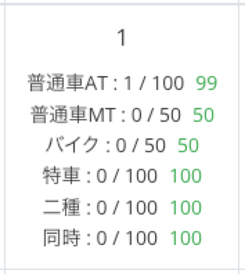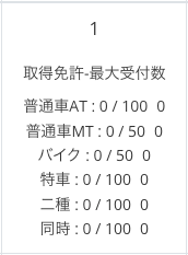 例えば、「普通車AT」で申し込みが1件あった場合、申し込みの状況に合わせて数字が以下のように変動します。