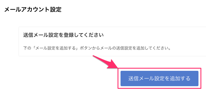 自社のメールアドレスからメールを送信する場合は、こちらのメールアカウント設定を行ってください。