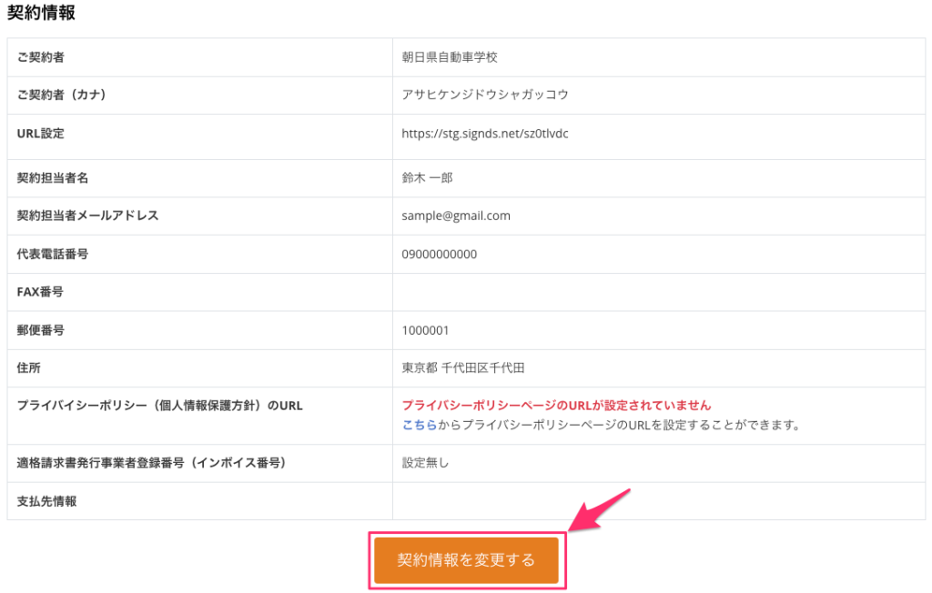 現在の契約情報が表示されますので、[契約情報を変更する]をクリックします。