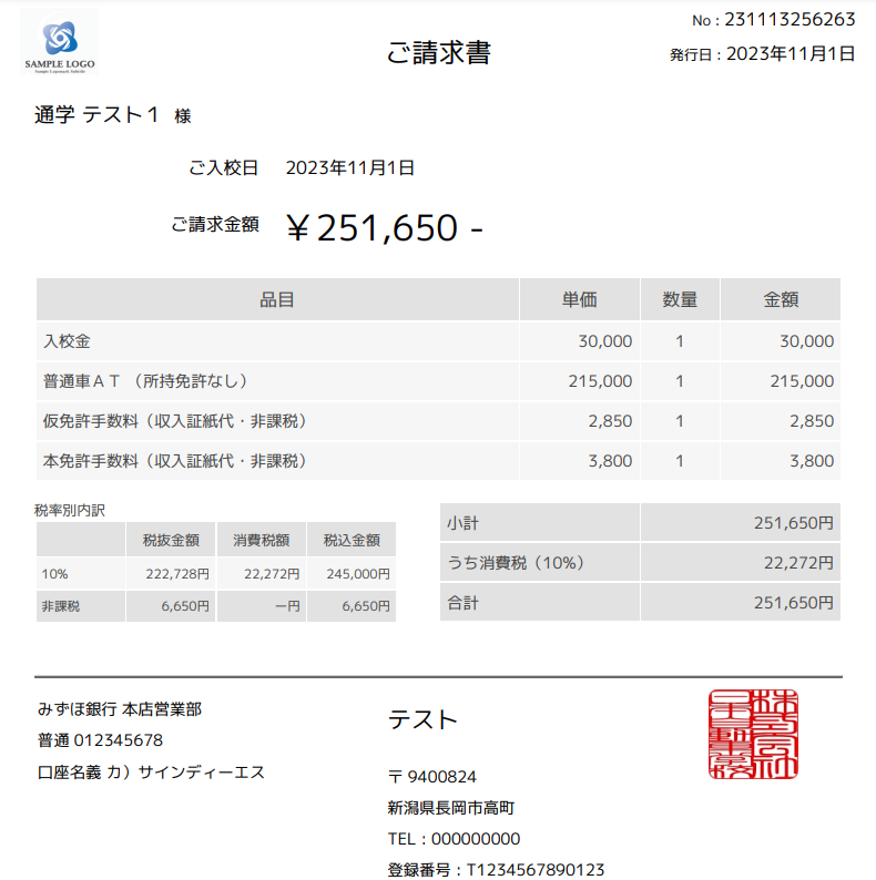 追加した印影は「請求書」、「領収書」の右下に表示されるようになります。