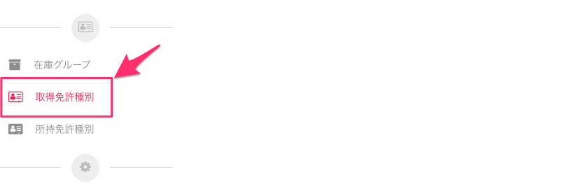 取得免許カテゴリーと紐づけて登録する必要があるため、事前に「在庫グループ」の登録が必要となります。