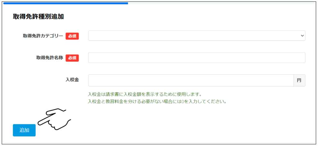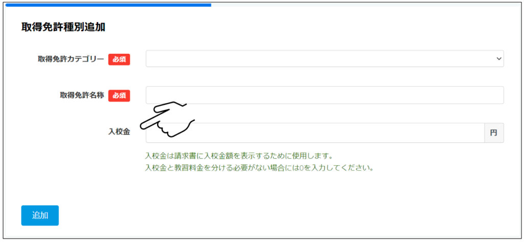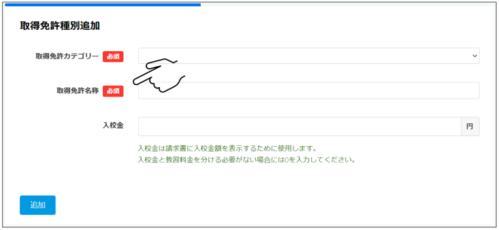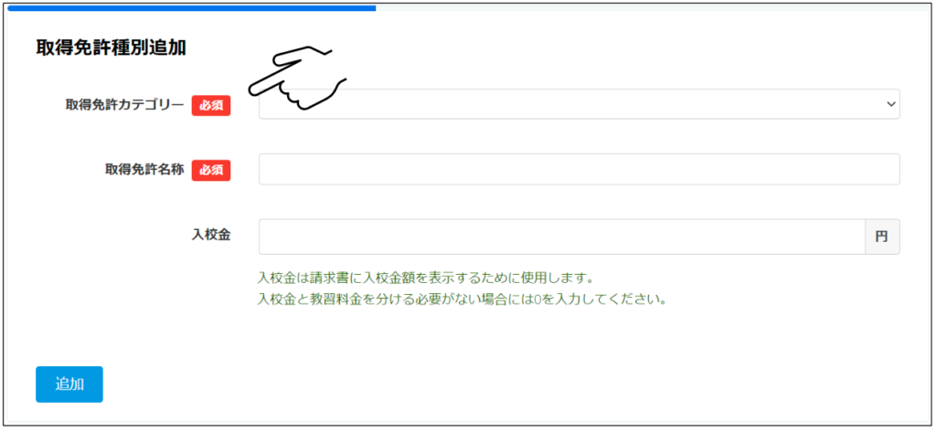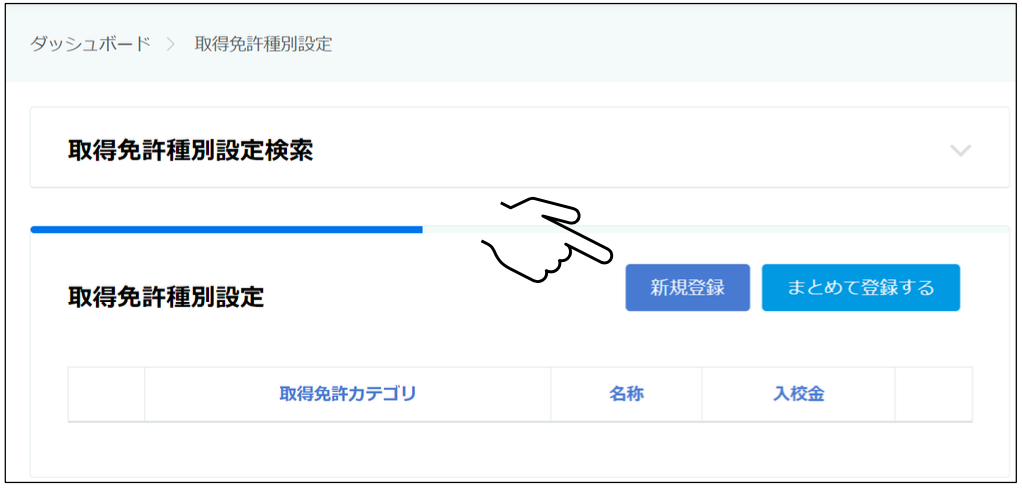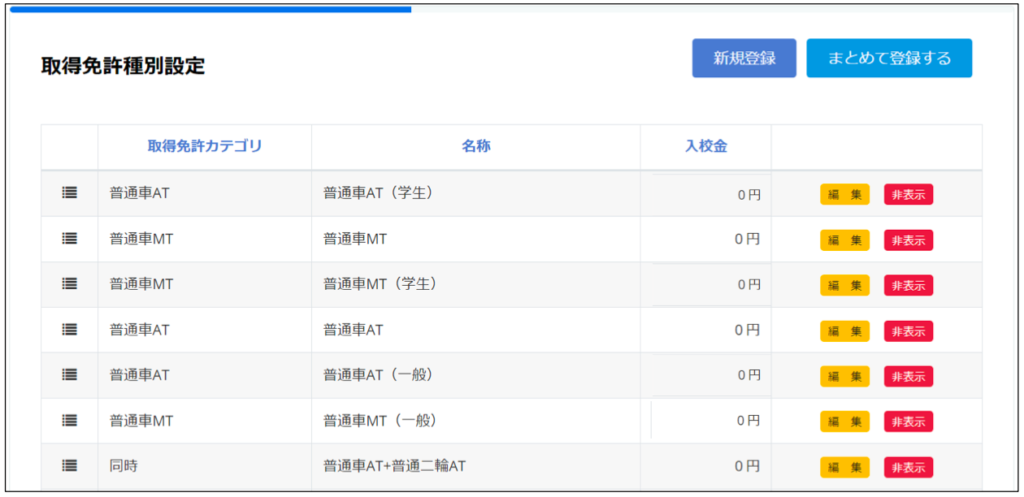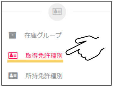 「取得免許種別」ではカテゴリに分けられた車種を作成することができます。