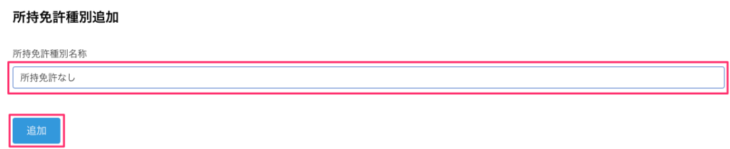 ※『所持免許なし』という選択肢を申し込みページに表示する場合、それを「所持免許種別」として登録します。