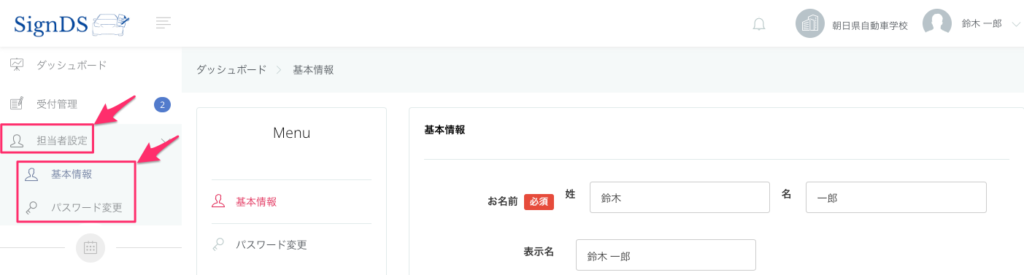 その後、「基本情報」または「パスワード変更」をクリックします。