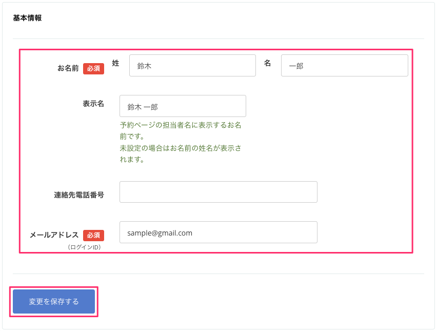 現在ログインしている自分自身の情報を変更するためのメニューです。