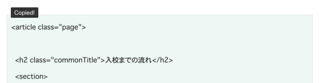 1.本ページ下部の「コピー用のテキスト」にカーソルを合わせると「Click to Copy」が表示されますので、そのままクリックします。「Copied!」と表示され自動的にテキストがコピーされます。