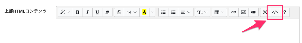 3.エディタをコード表示( </>アイコンをクリック )に切り替えます。