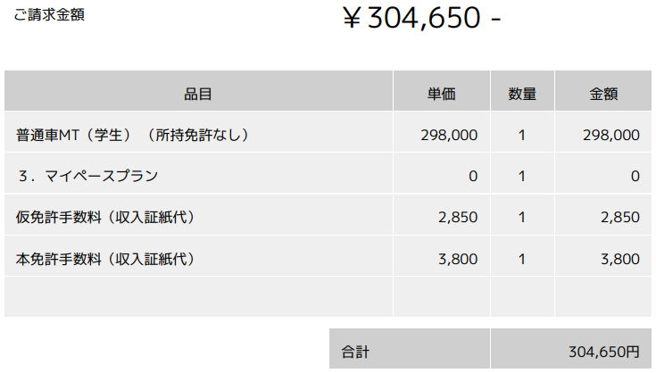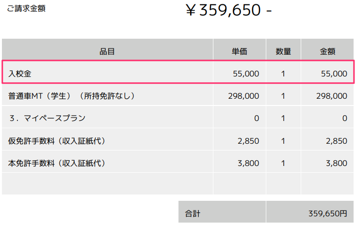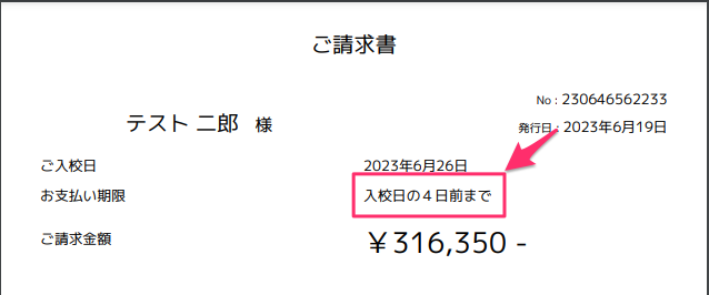 入校金を計算しない場合は請求明細に表示されず、合計金額にも反映されません。